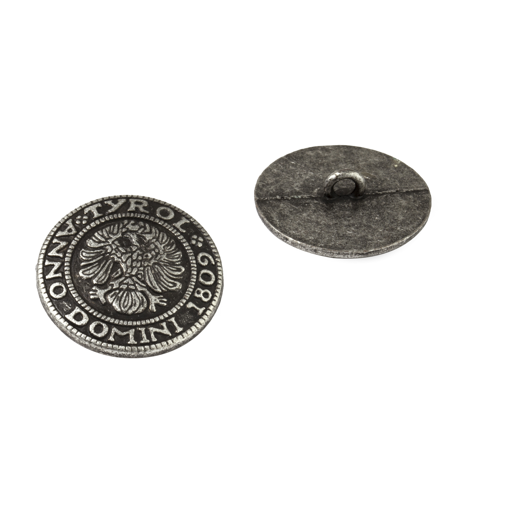 Sew-On Shank Button, Alloy material, With Design, 23mm, Anti Silver color.