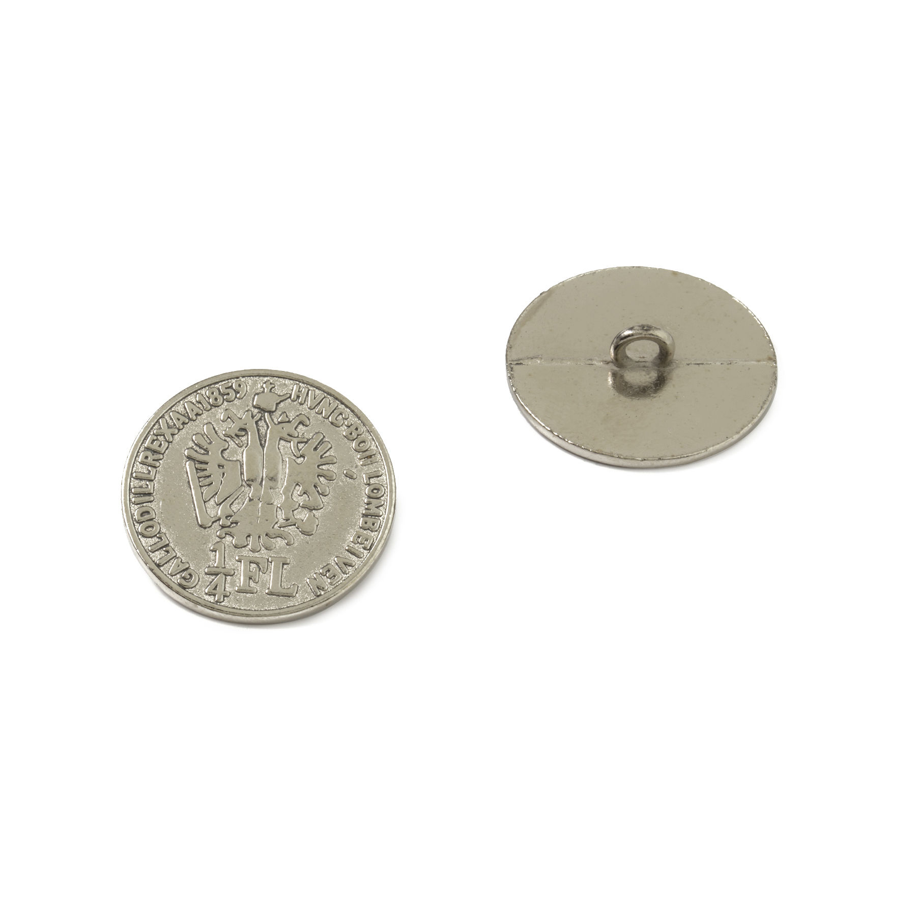 Sew-On Shank Button, Alloy material, With Design, 23mm, Nickel color.