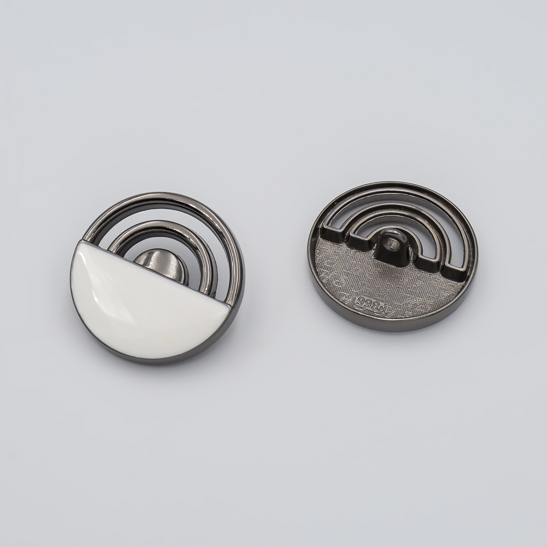 Sew-On Shank Button, Alloy material, With Design, 25mm, White - Black Nickel color.