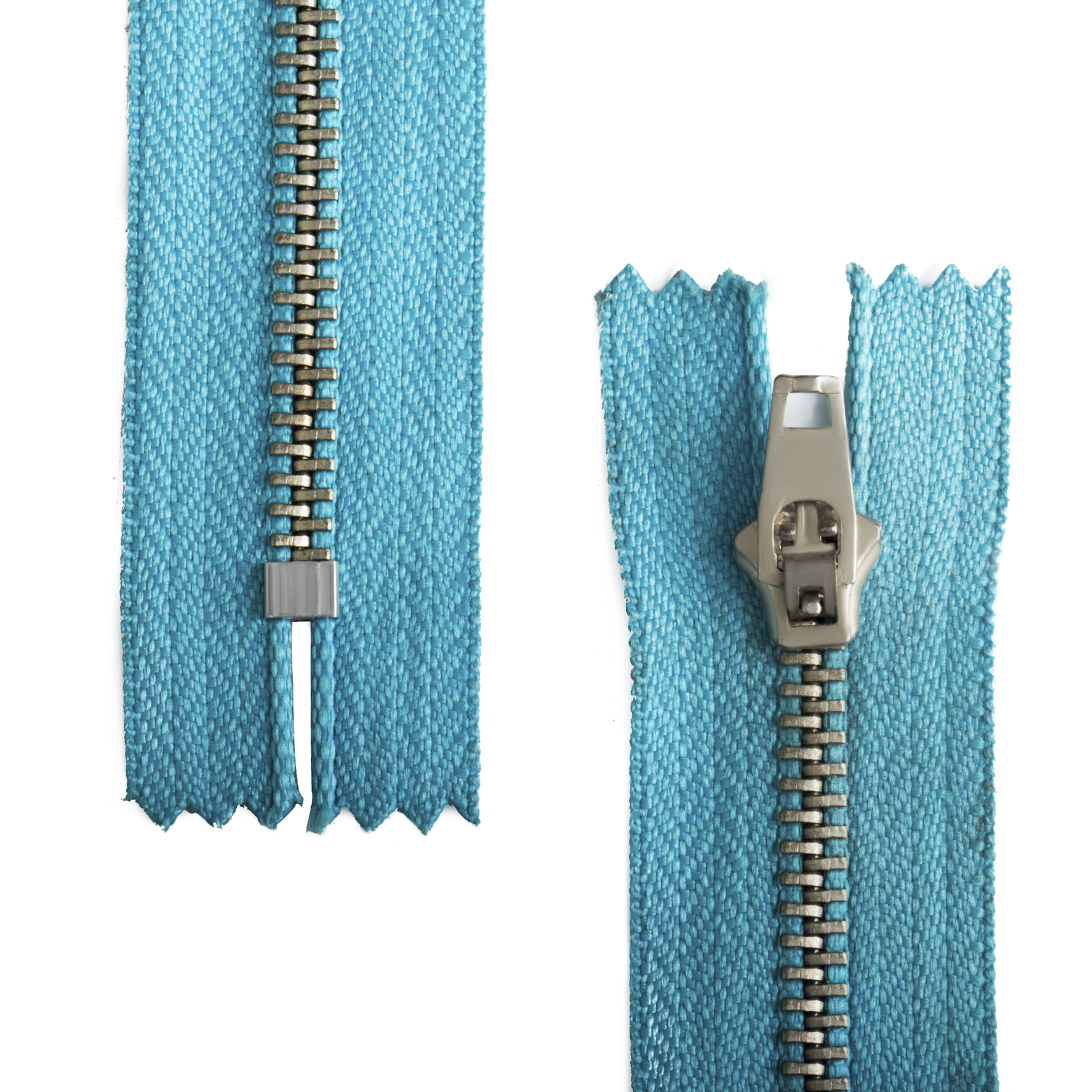Μεταλλικό Φερμουάρ, τύπου Κλειστού, Αυτόματο Κλείδωμα, με δόντια χρώμα Nickel, 12cm, Light Blue-547 χρώμα.