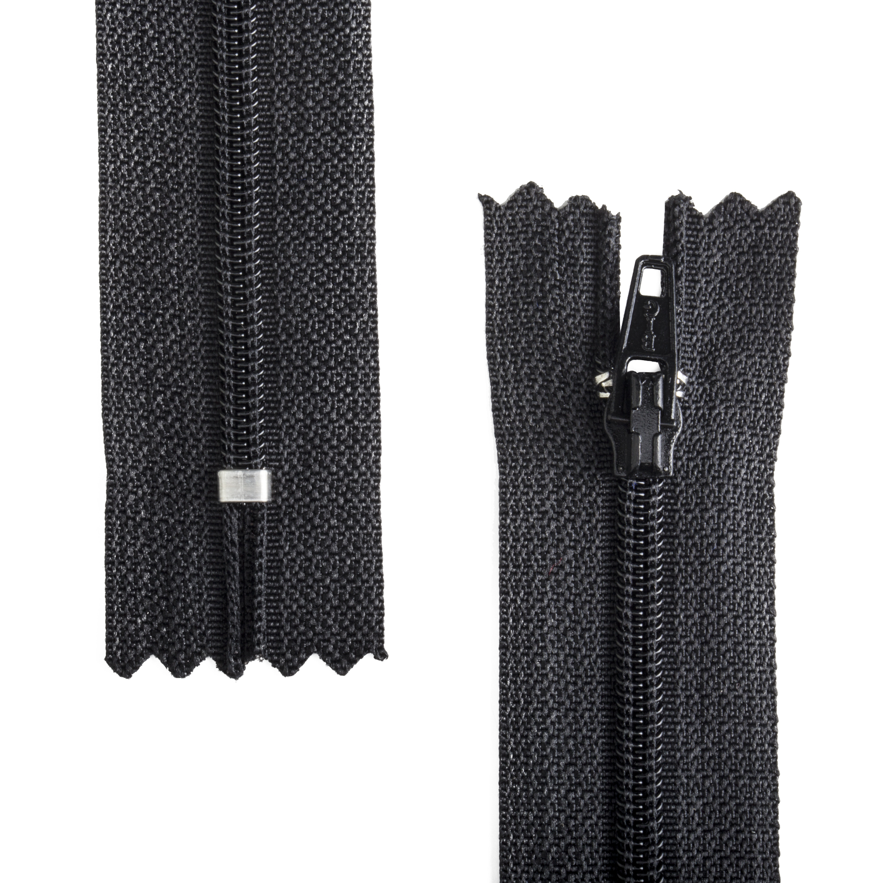 Πλαστικό Φερμουάρ, τύπου Κλειστού, Αυτόματο Κλείδωμα, με δόντια χρώμα Ίδιο με το χρώμα του υφάσματος, 18cm, Black-580 χρώμα.