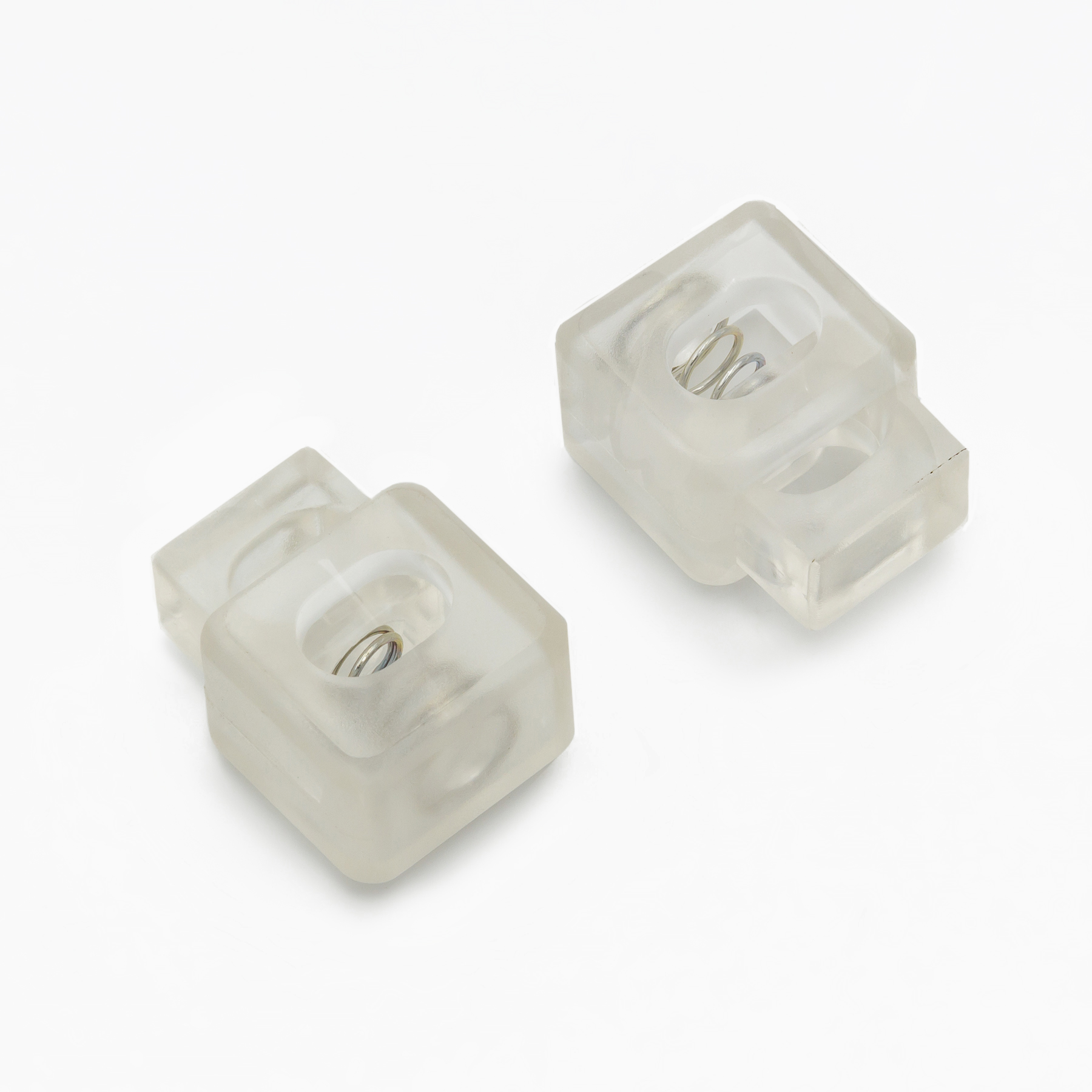 Στόπερ Κορδονιών, υλικό Plastic, 22 X 17mm, Διαφανές χρώμα. Με τρύπα 9mm.