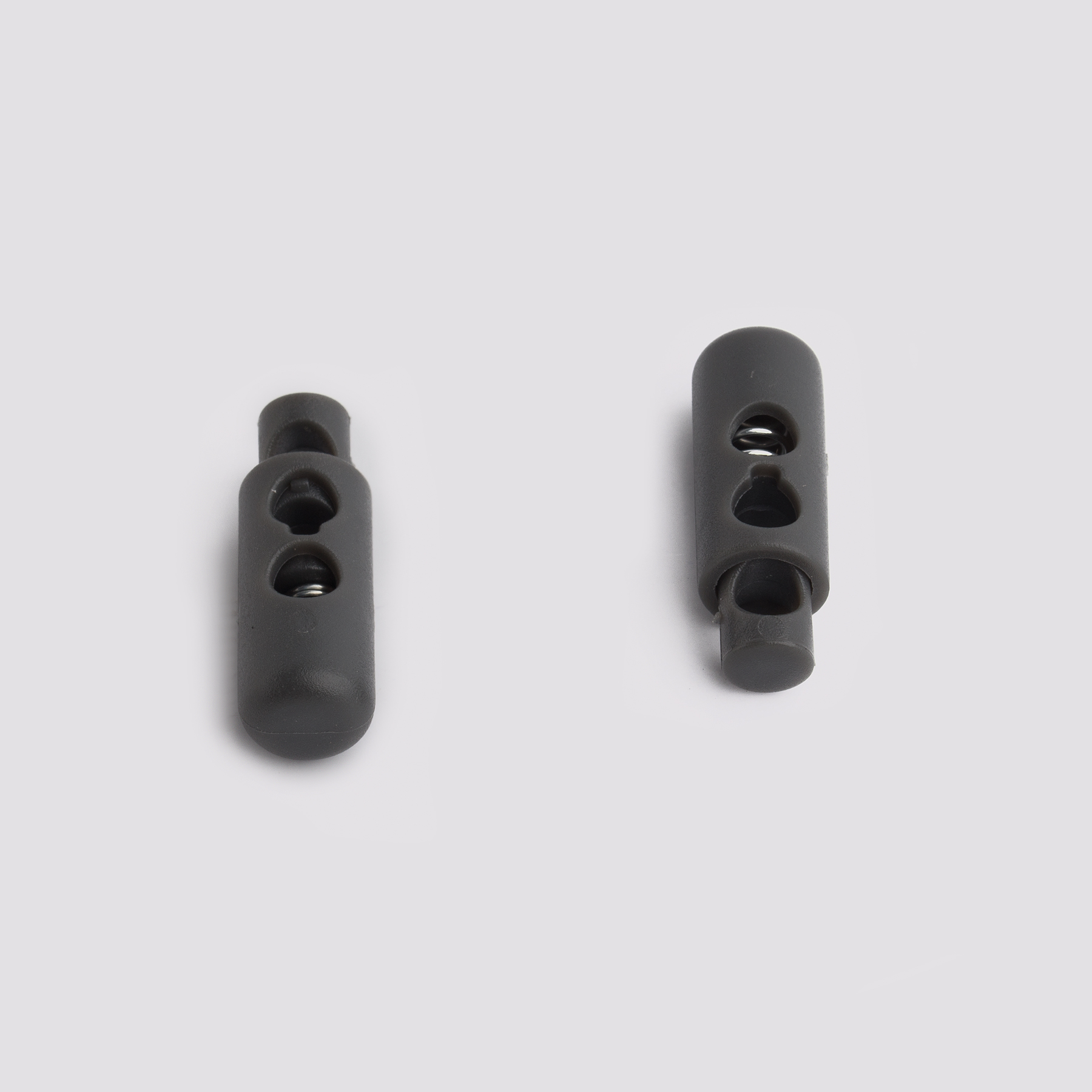 Στόπερ Κορδονιών, υλικό Plastic, 24 X 8.3mm, Dark Grey χρώμα. Με τρύπα 4mm.