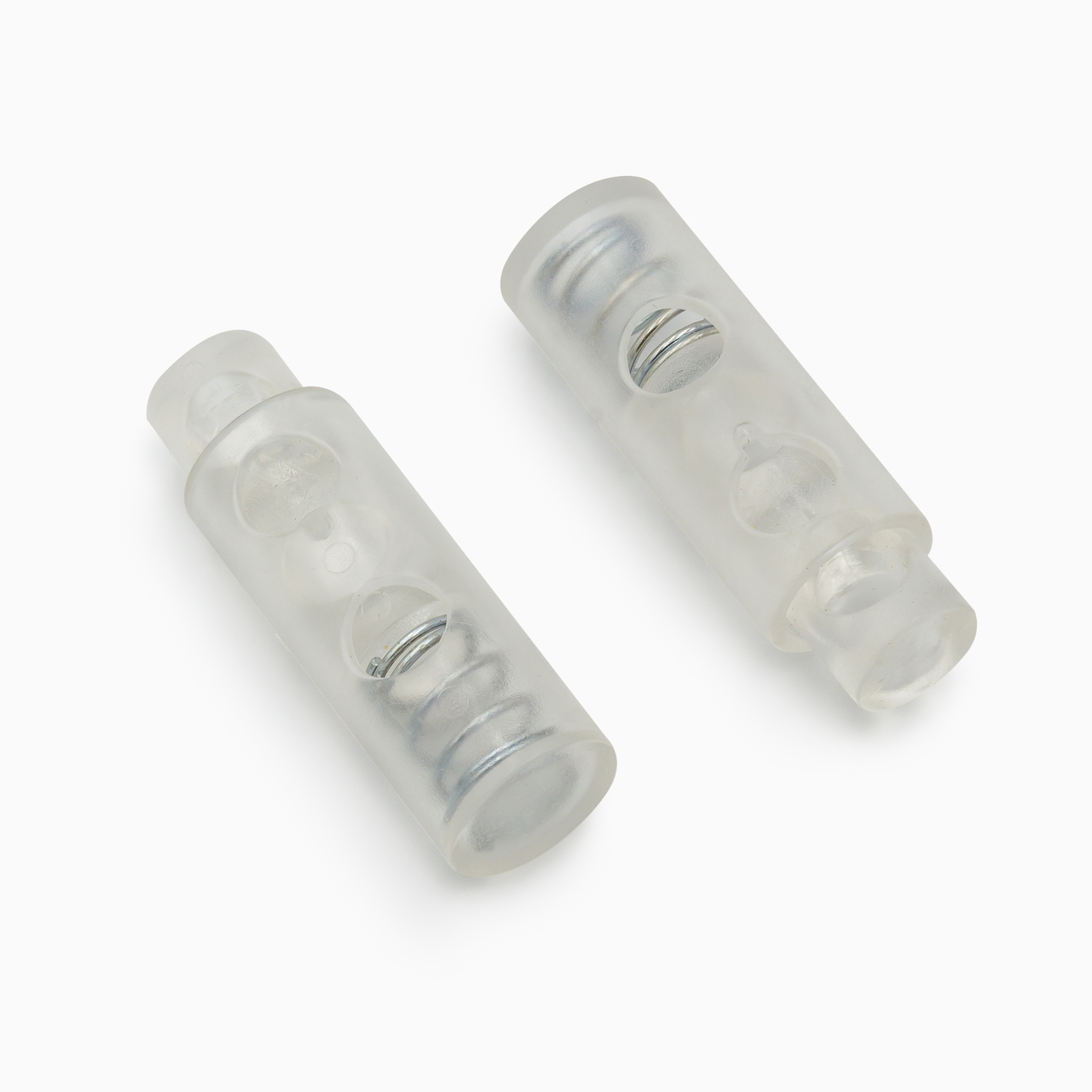 Στόπερ Κορδονιών, υλικό Plastic, 39 Χ 12.5mm, Διαφανές χρώμα. Με τρύπα 6mm.