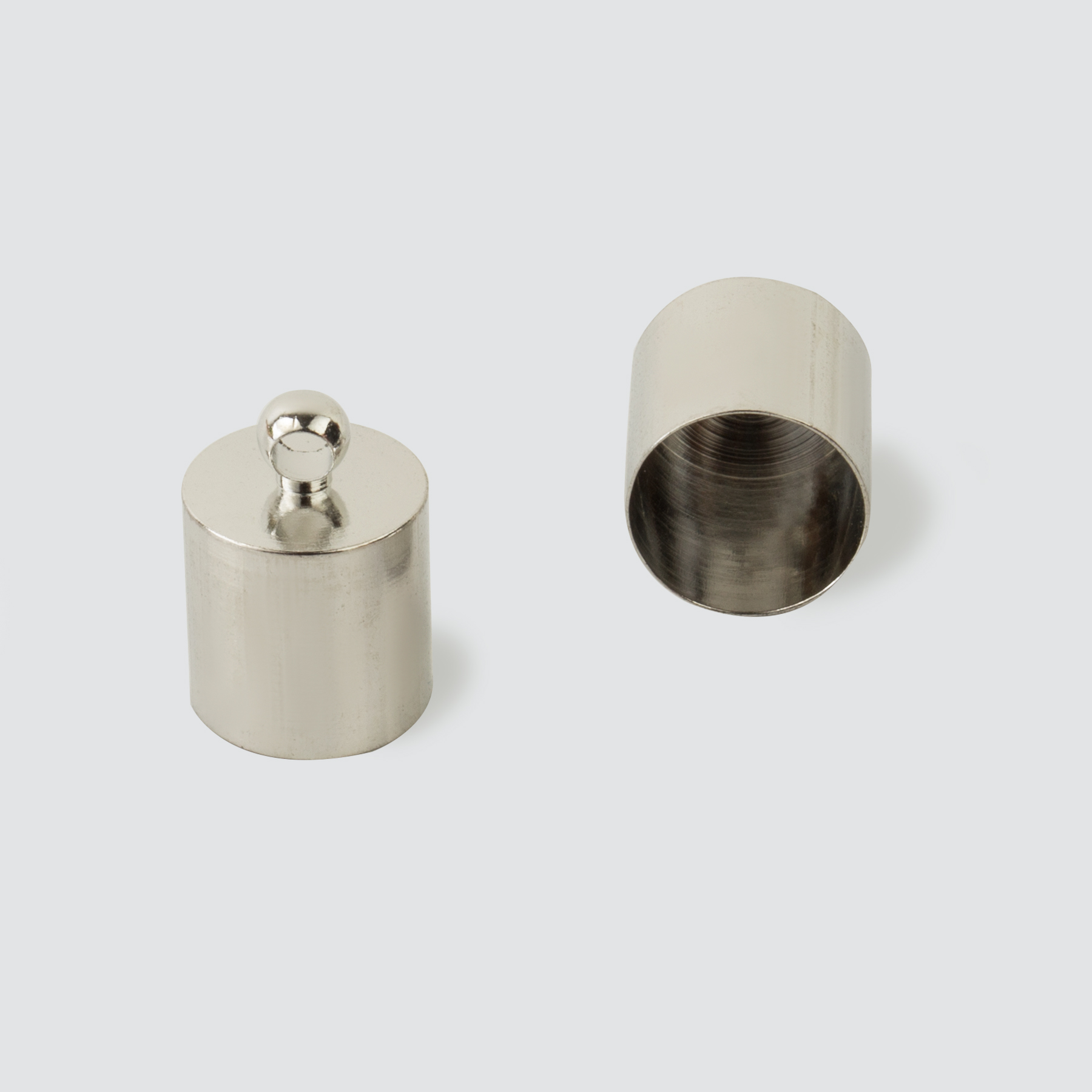 Τελείωμα Κορδονιού, υλικό Alloy, 13mm, Nickel χρώμα. Με τρύπα 9mm.