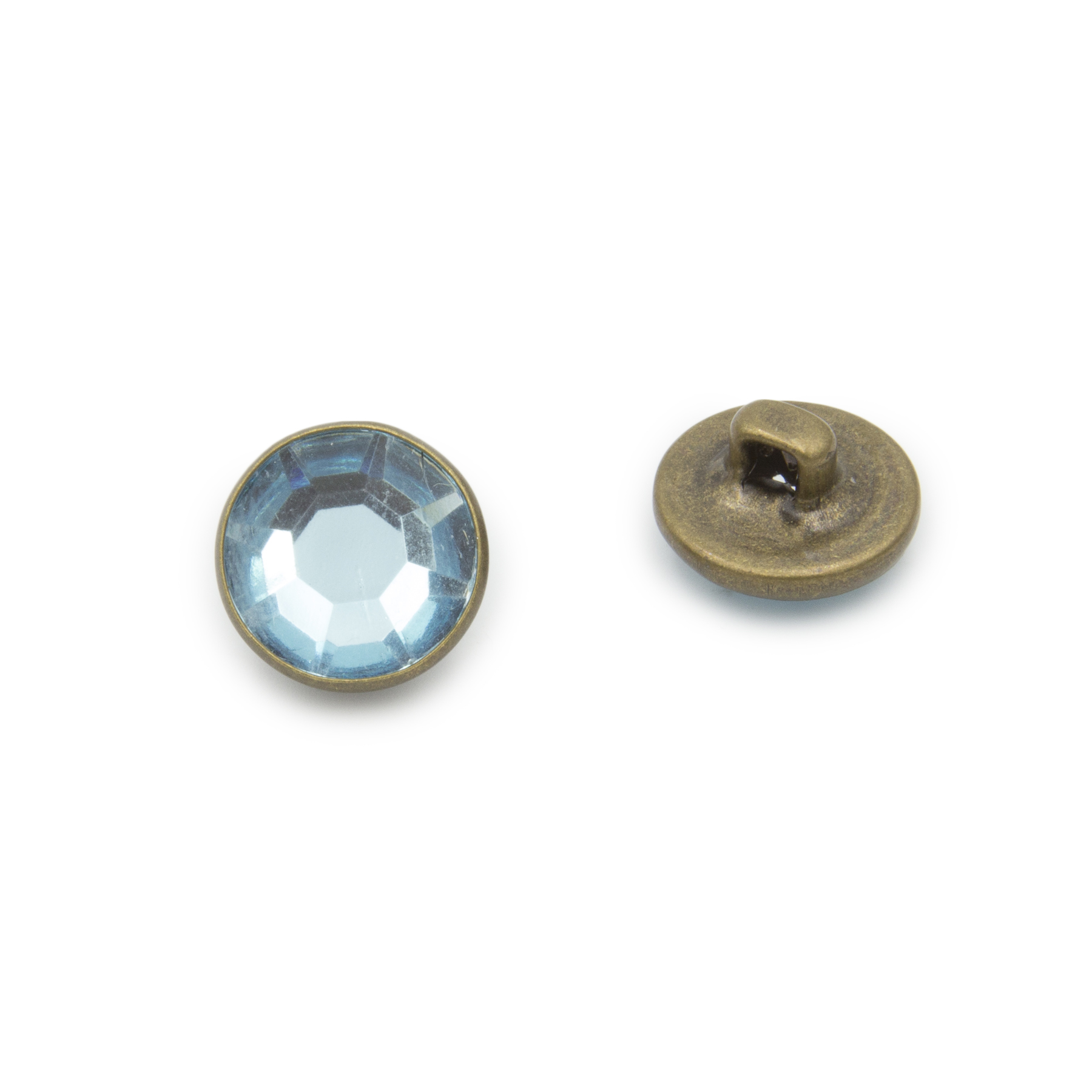 Κουμπί Ραφτό Με Ποδαράκι, Ορειχάλκινο, Με στρας, 12.5mm, Anti Brass - Light Blue χρώμα.
