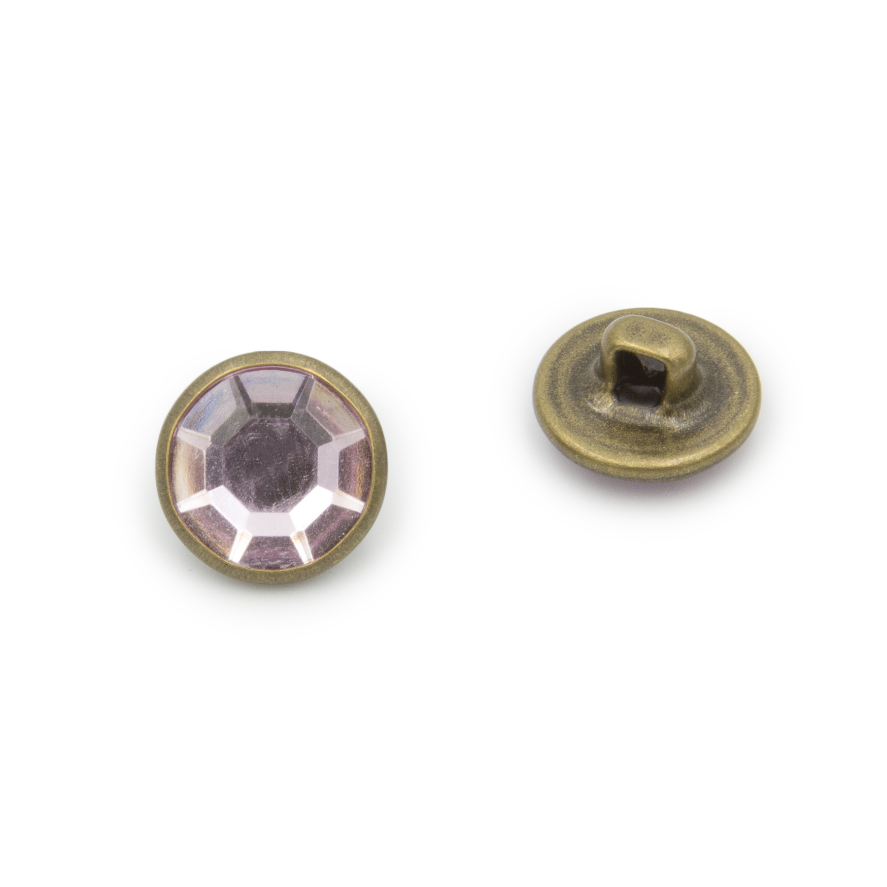 Κουμπί Ραφτό Με Ποδαράκι, Ορειχάλκινο, Με στρας, 12mm, Anti Brass - Pink χρώμα.