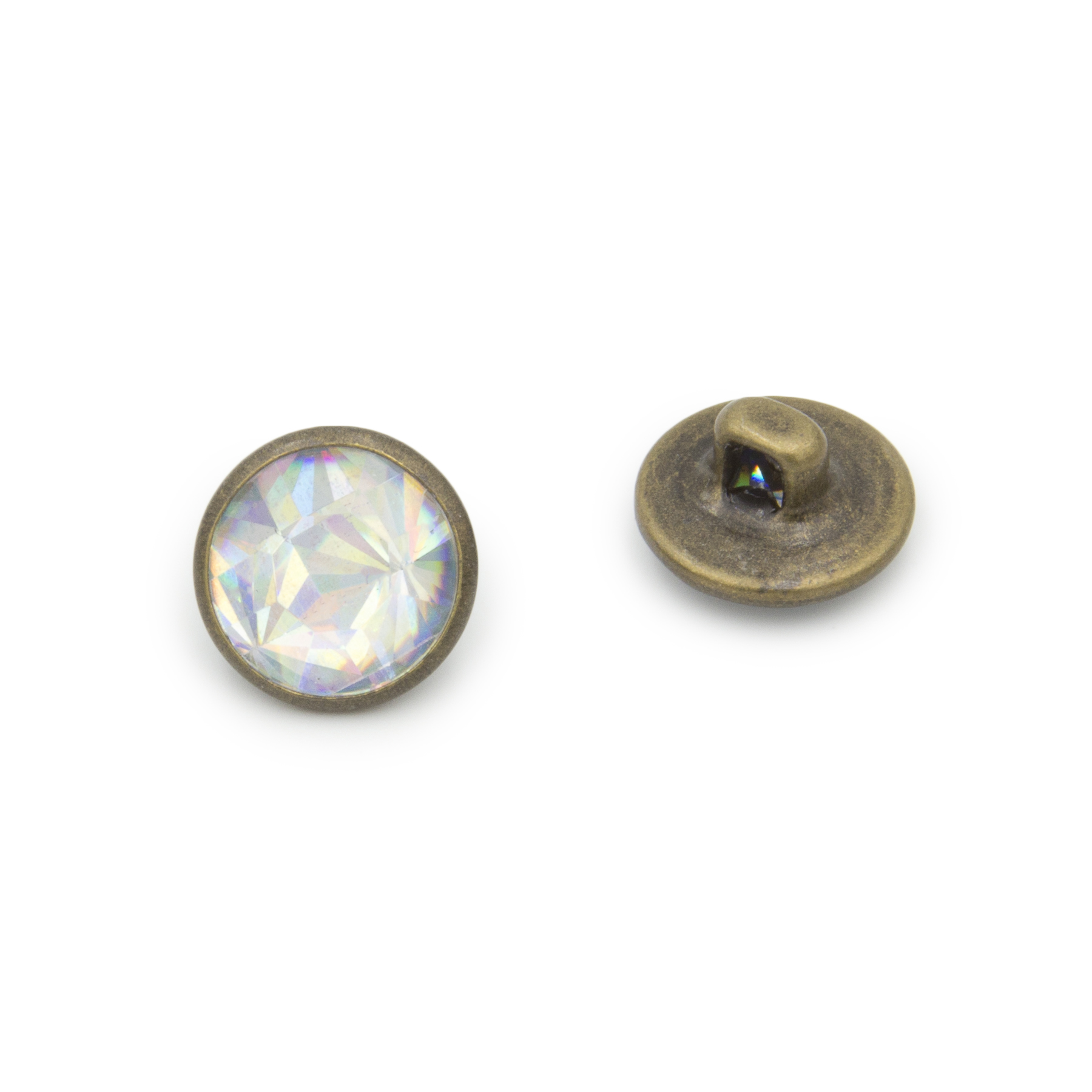 Κουμπί Ραφτό Με Ποδαράκι, Ορειχάλκινο, Με στρας, 12mm, Anti Brass - Rainbow χρώμα.