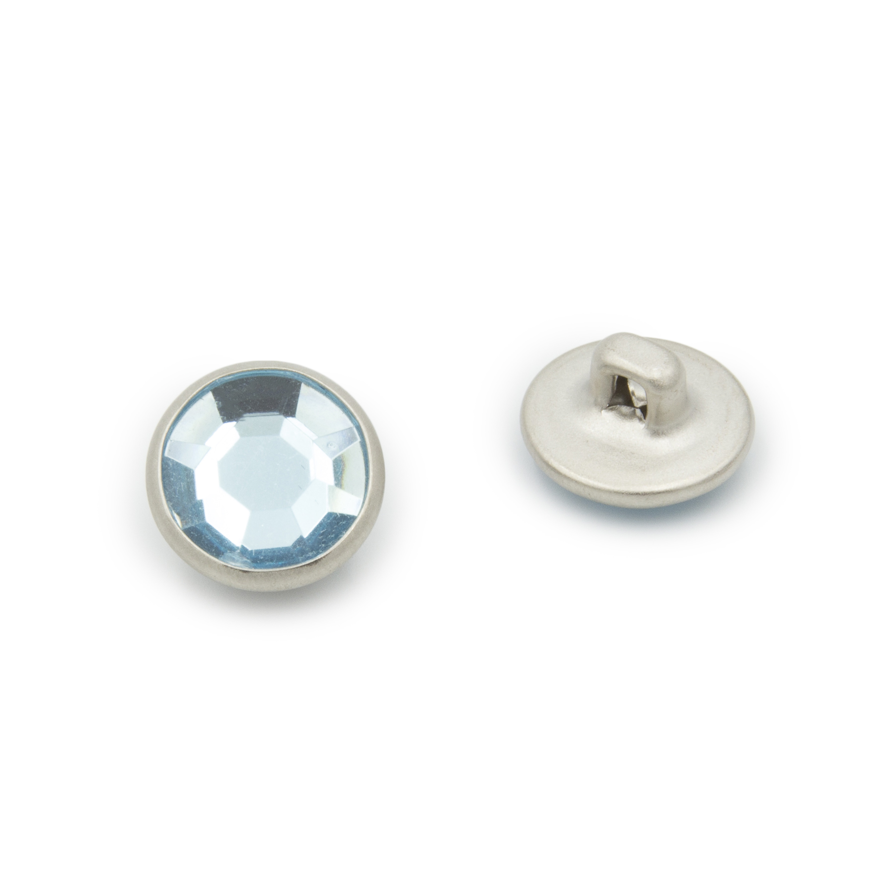 Κουμπί Ραφτό Με Ποδαράκι, Ορειχάλκινο, Με στρας, 12mm, Dull Nickel - Light Blue χρώμα.