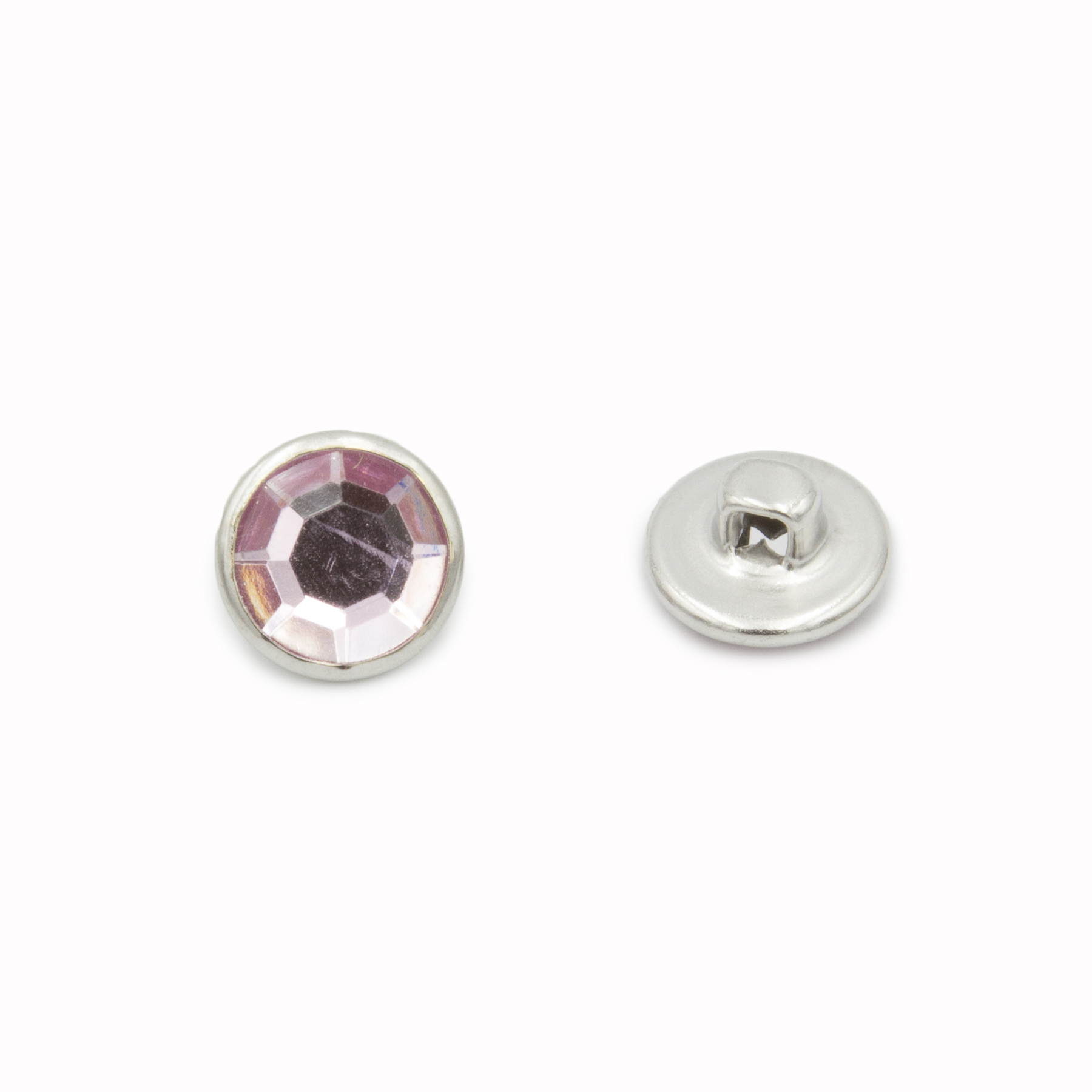 Κουμπί Ραφτό Με Ποδαράκι, Ορειχάλκινο, Με στρας, 12mm, Nickel - Pink strass χρώμα.