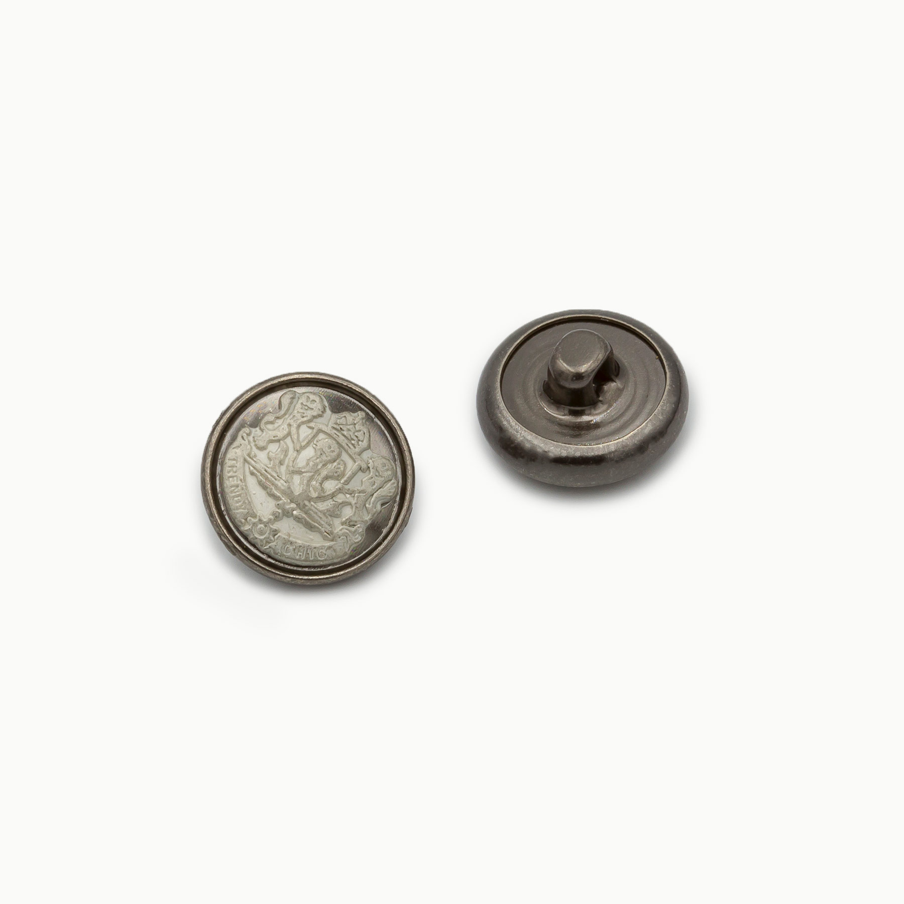 Κουμπί Ραφτό Με Ποδαράκι, Ορειχάλκινο, Με σχέδιο, 15mm, Black Nickel - White χρώμα.