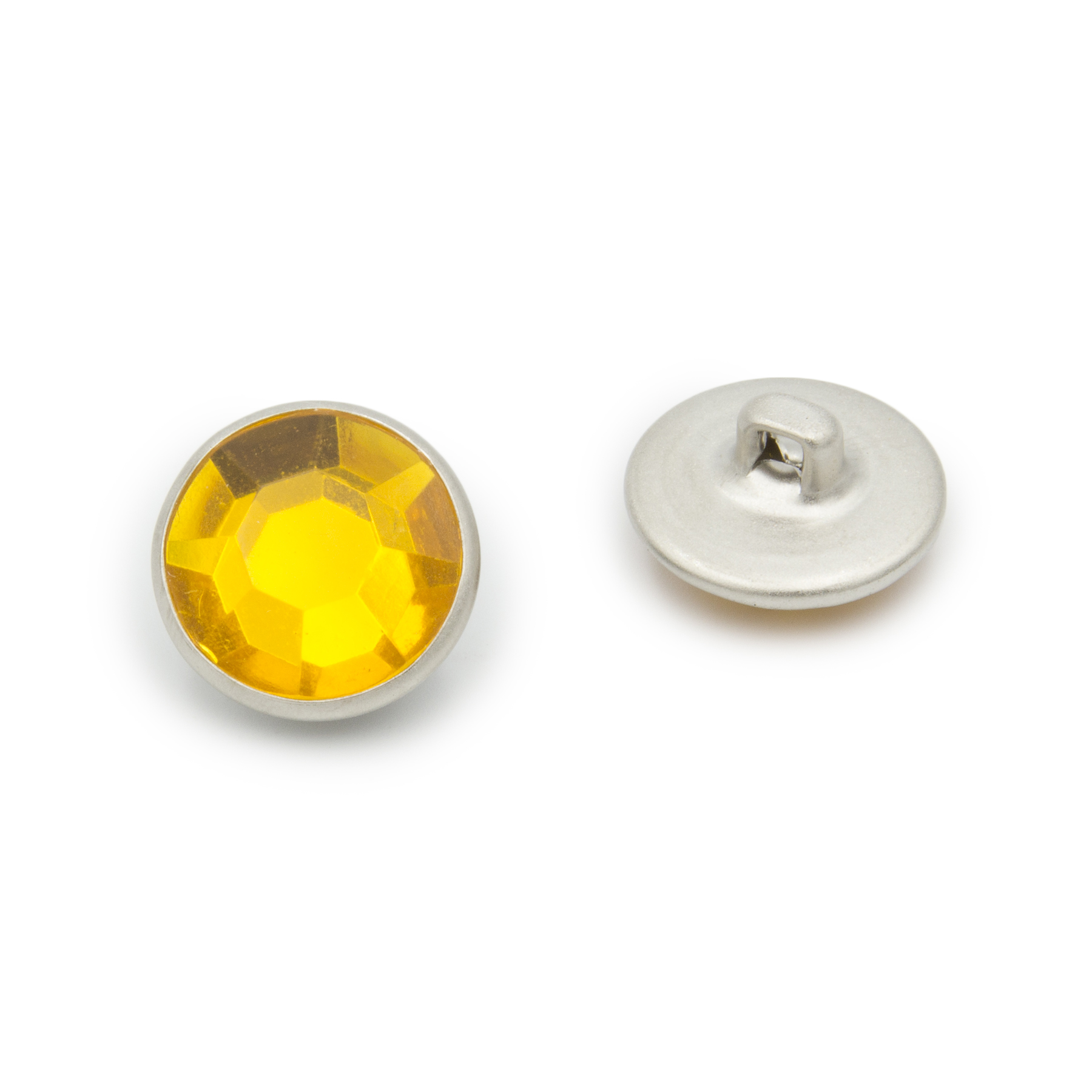Κουμπί Ραφτό Με Ποδαράκι, Ορειχάλκινο, Με στρας, 15mm, Dull Nickel - Yellow χρώμα.