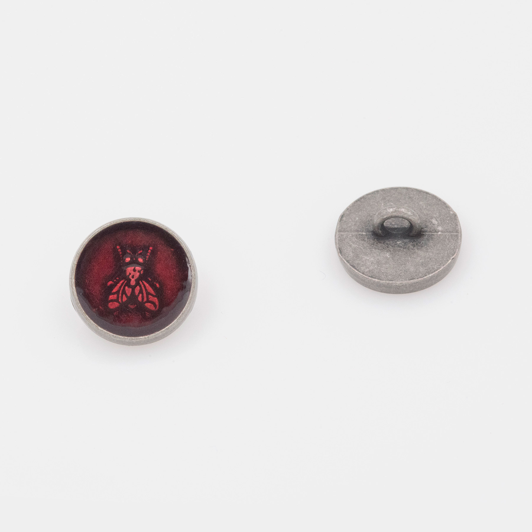 Κουμπί Ραφτό Με Ποδαράκι, 15mm, Old Silver - Red Epoxy