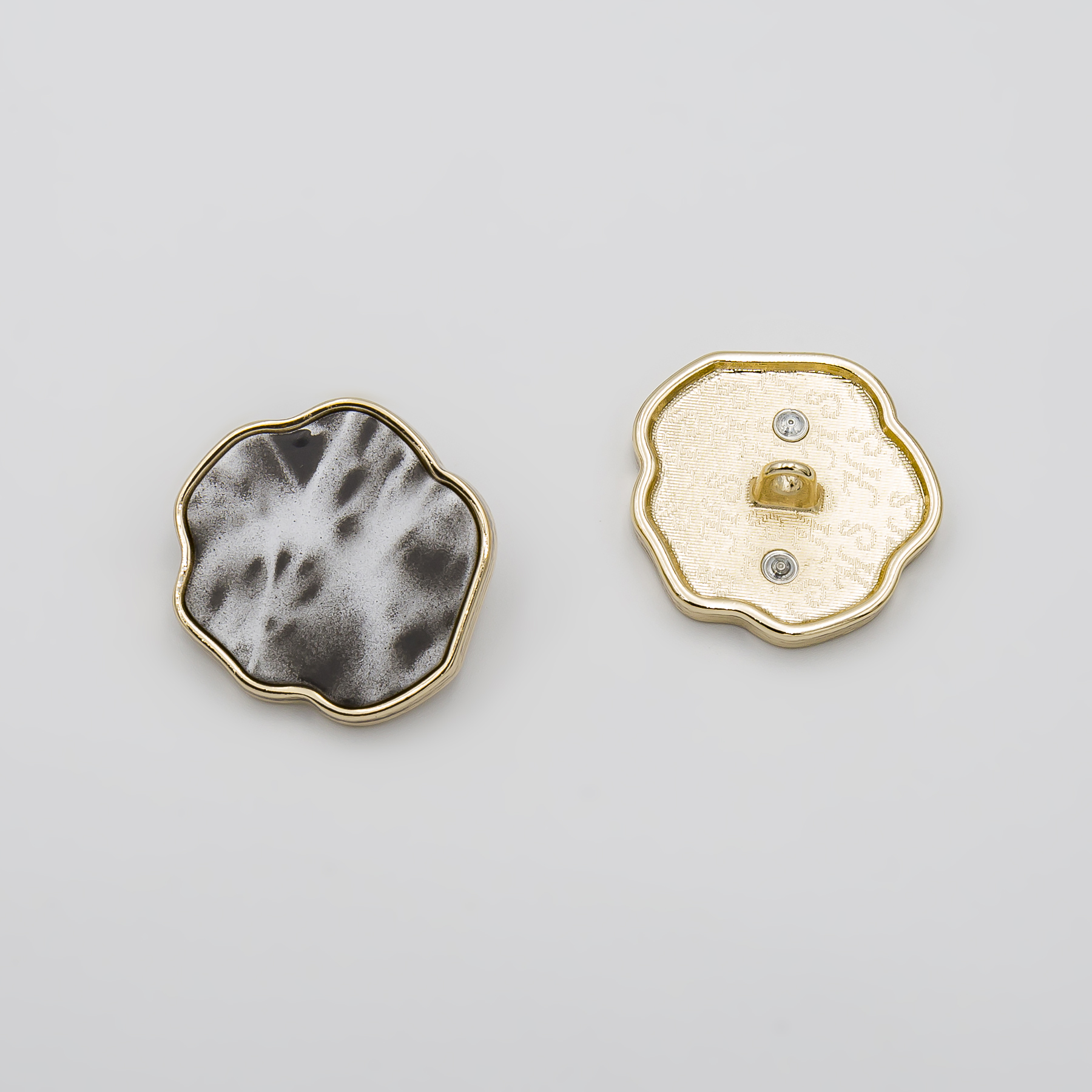Κουμπί Ραφτό Με Ποδαράκι, υλικό Alloy, Με σχέδιο, 24 X 23mm, White - Black & Gold χρώμα.