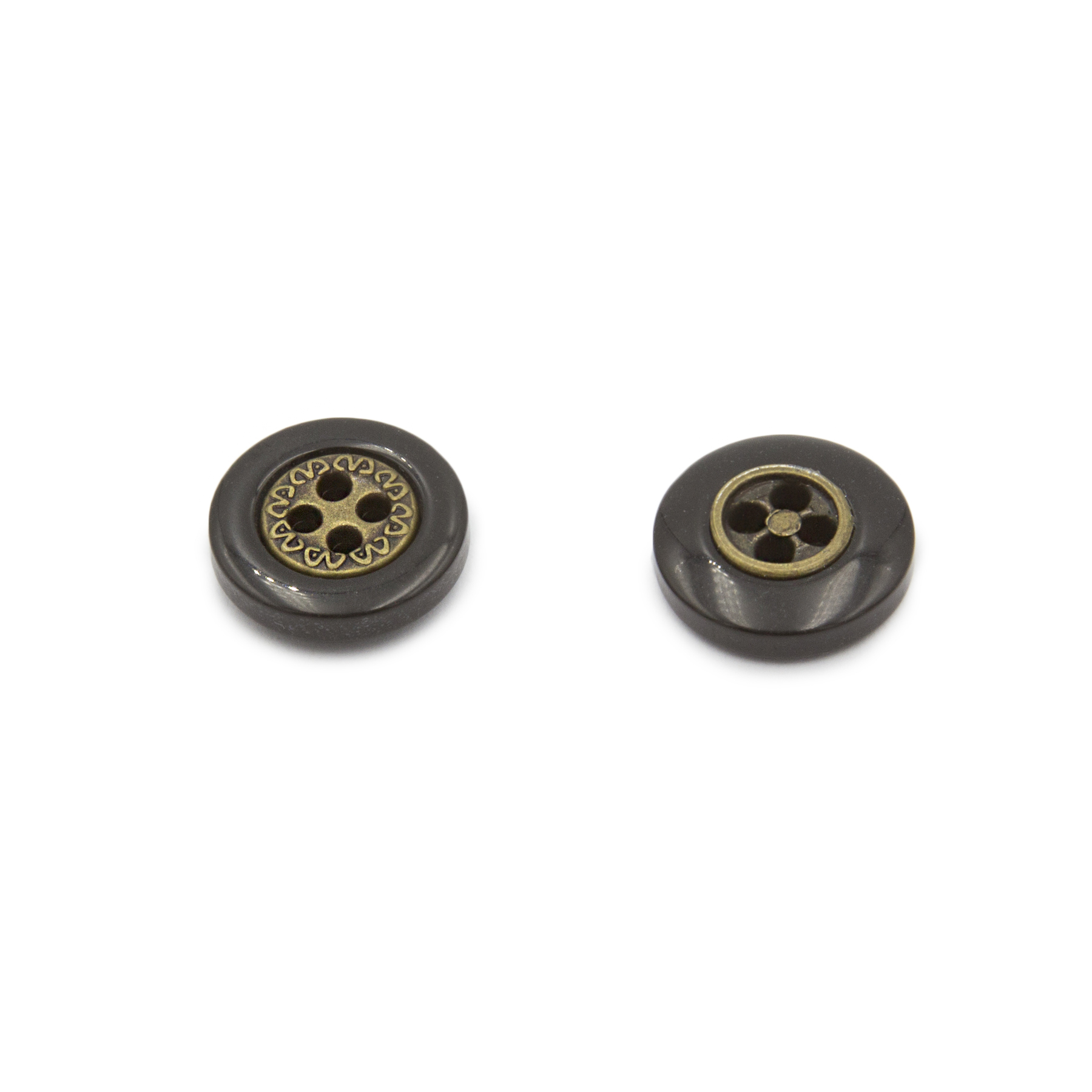 Κουμπί Ραφτό Με Τρύπα, Πλαστικό υλικό, Με σχέδιο, 12.5mm, Black-Anti Brass χρώμα.