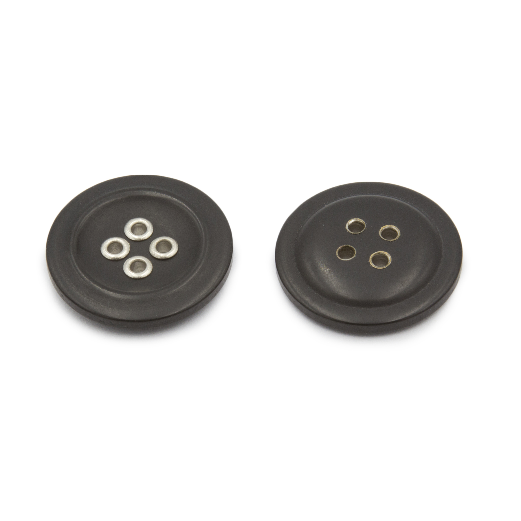 Κουμπί Ραφτό Με Τρύπα, Πλαστικό υλικό, Χωρίς σχέδιο, 25mm, Black with Nickel eyelets χρώμα.