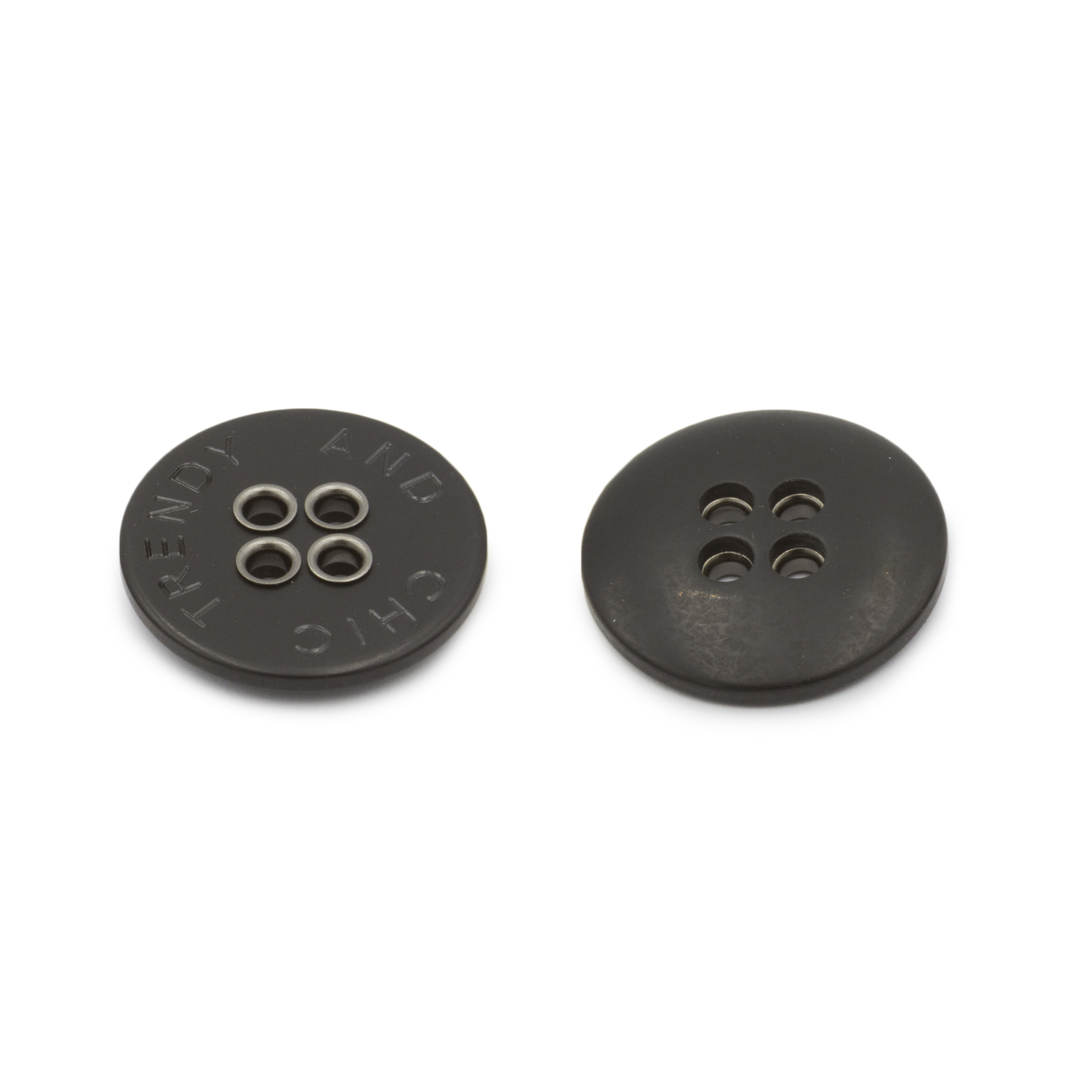 Κουμπί Ραφτό Με Τρύπα, Πλαστικό υλικό, Με Λογότυπο, 37mm, Black with Black Nickel eyelets χρώμα.