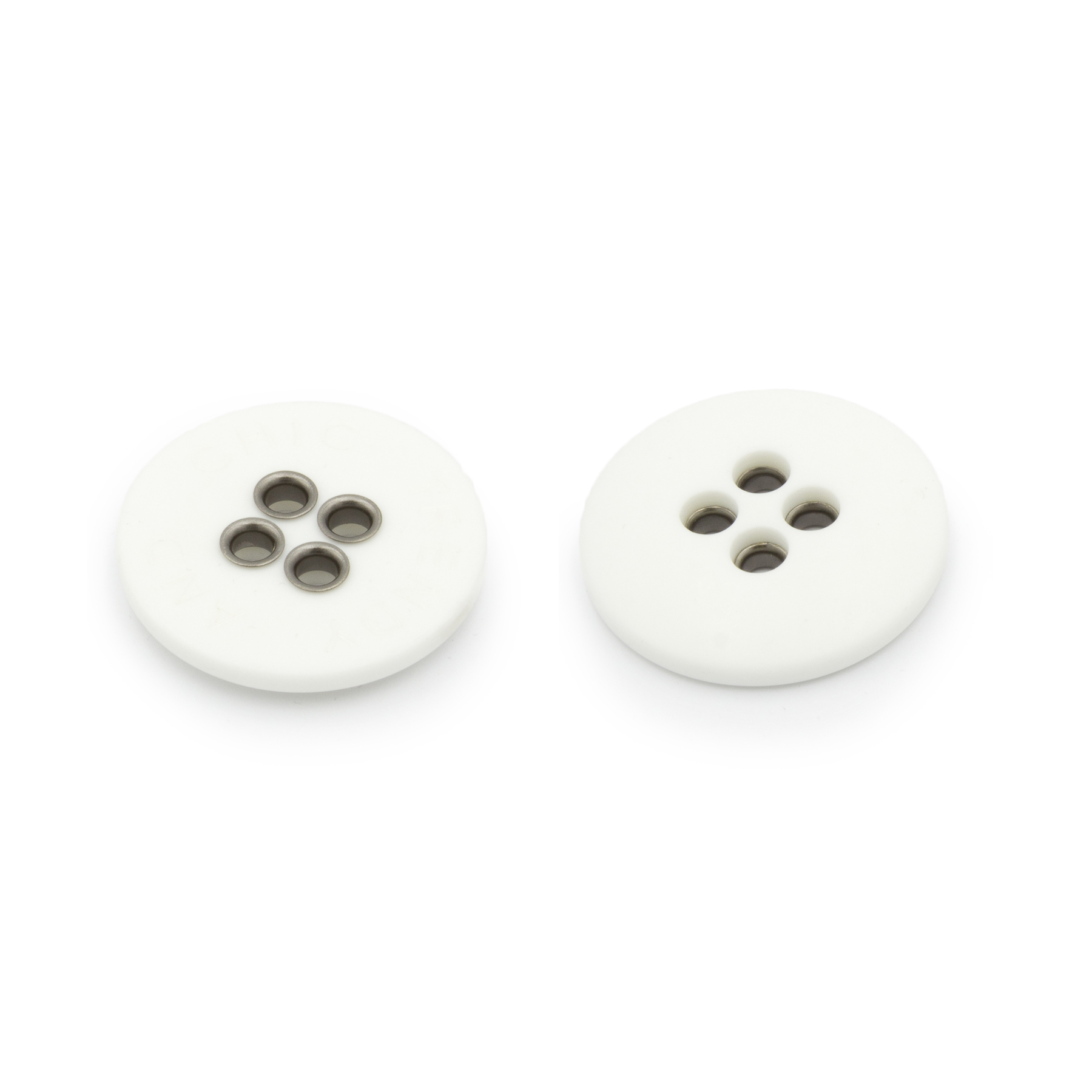 Κουμπί Ραφτό Με Τρύπα, Πλαστικό υλικό, Με Λογότυπο, 37mm, White with Black Nickel eyelets χρώμα.