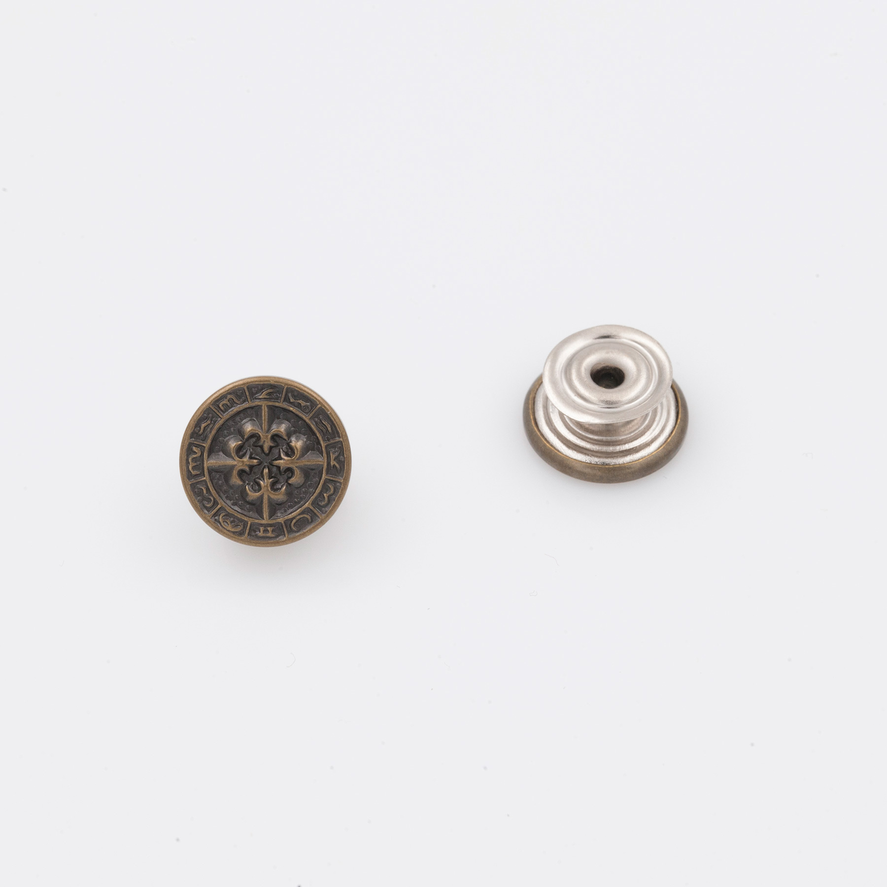 Κουμπιά για Jean, Σπαστό Λαιμό, Ορειχάλκινο, 14mm, Με σχέδιο, Anti Brass χρώμα.